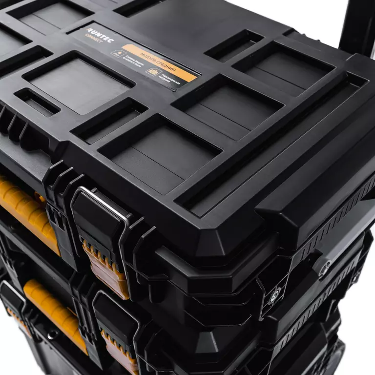 Модульная система для хранения инструмента Runtec Connect 4 предназначена для транспортировки и хранения электро- и ручного инструмента, оснастки, крепежей и полезных мелочей (веревки, скотча, разметочных мелков, перчаток и т.д.), которые используются при строительно-ремонтных работах. Каждый элемент системы оснащен специальными креплениями, которые позволяют дополнять систему ящиками, либо, наоборот, уменьшать количество ящиков в соответствии с необходимостью.
